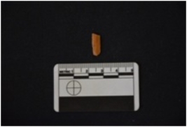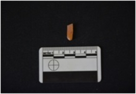 | Description / विवरण | Chert blade fragment has two ridges on dorsal side, striking platform bulb on ventral side, broken from distal end trapezoidal cross-section and use-wear marks on cutting edges. |
