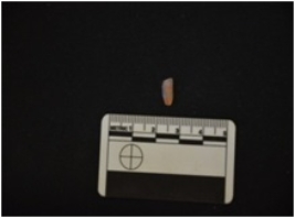 | Description / विवरण | Chalcedony blade fragment has a midridge on dorsal side, striking platform, bulb on ventral side, broken from distal end use-wear marks on cutting edges, triangular cross-section and raw-material given heat treatment. |