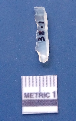 | Description / विवरण | It is a blade fragment. The ridges and flake scars are clearly seen on the dorsal surface while the ventral surface is plain. The lateral sides are sharp and it is white in colour. |
