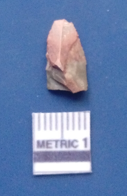 | Description / विवरण | It is a blade fragment. The ridges and flake scars are clearly seen on the dorsal surface while the ventral surface is plain. The lateral sides are sharp and it is brownish in colour. |