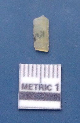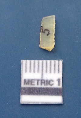 | Description / विवरण | It is a blade fragment. The ridges and flake scars are clearly seen on the dorsal surface while the ventral surface is plain. The lateral sides are sharp and it is white in colour. It is triangular in cross - section. |