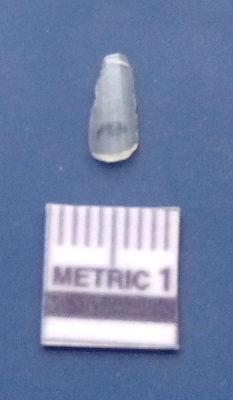 | Description / विवरण | It is a blade fragment. The ridges and flake scars are clearly seen on the dorsal surface while the ventral surface is plain. The lateral sides are sharp and it is white in colour. |