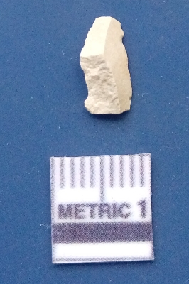| Description / विवरण | It is a blade fragment. The ridges and flake scars are clearly seen on the dorsal surface while the ventral surface is plain. The lateral sides are sharp and it is white in colour. |