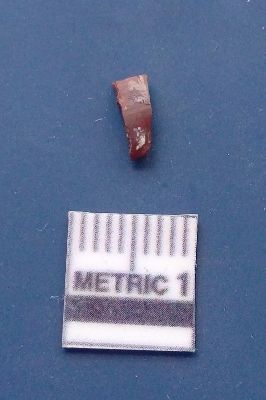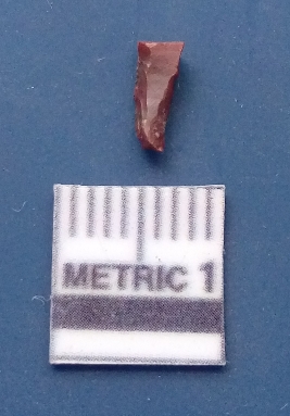 | Description / विवरण | It is a blade fragment. The ridges and flake scars are clearly seen on the dorsal surface while the ventral surface is plain. The lateral sides are sharp and it is dark brownish in colour. |