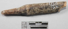 | Description / विवरण | A Point with cylindrical shape but its upper part is conical. Its pointed end is blunted and other end is broken. Its colour is dark brown and surface is rough. |