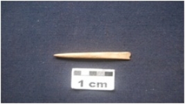| Description / विवरण | Point with one end pointed and the other end is beveled. Striations marks are visible. |