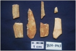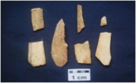 | Description / विवरण | Four pieces of scrapers only 3 are diagnostic, one of which is oval shaped and one end is broader and thinner than the other end. They are polished. |