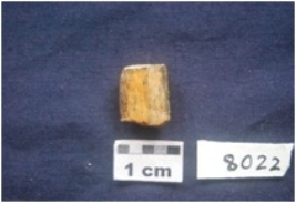 | Description / विवरण | A fragment of a scraper with a rough semi hemisphere which is thick on one end and the other than. It is polished and has striation use marks. |