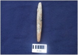 | Description / विवरण | One end which is rounded and the other with bevel end. It is thicker in the central. It is slightly encrustation. |