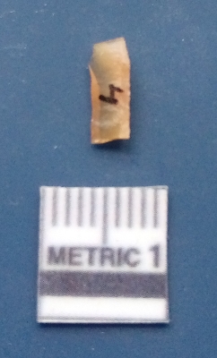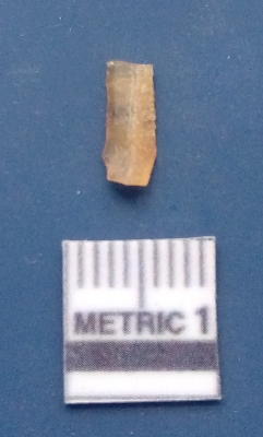 | Description / विवरण | It is a blade fragment. The ridges are clearly seen on the dorsal surface while the ventral surface is plain. It is triangular in cross - section. |