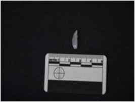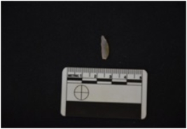 | Description / विवरण | Chalcedony point has a ridge on dorsal side, striking platform, bulb on ventral side, triangular cross-section and use-wear marks on cutting edges. |