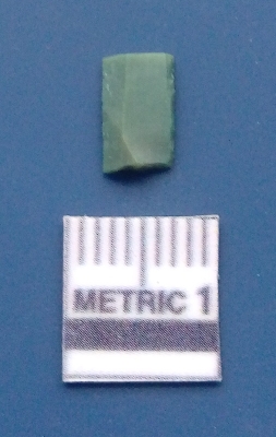 | Description / विवरण | It is a blade fragment. The ridges are clearly seen on the dorsal surface while the ventral surface is plain. It is trapezoidal in cross - section. The lateral edges are sharp and it is green in colour. |