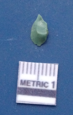 | Description / विवरण | It is a blade fragment. The ridges are clearly seen on the dorsal surface while the ventral surface is plain. It is greenish in colour. |