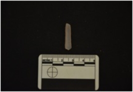 | Description / विवरण | Chalcedony blade has a midridge on dorsal side, striking platform, diffused bulb on ventral side, use-wear marks on cutting edges and triangular cross-section. |