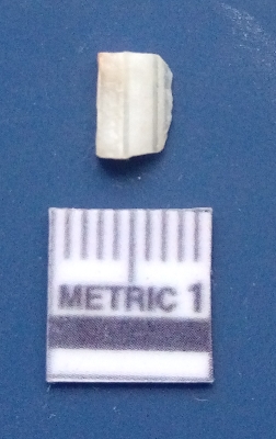 | Description / विवरण | It is a blade fragment. The ridges are clearly seen on the dorsal surface while the ventral surface is plain. It is white in colour. Some bands are clearly seen. |