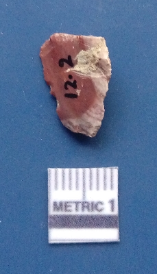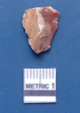 | Description / विवरण | It is a blade fragment. The ridges are clearly seen on the dorsal surface while the ventral surface is plain. It is dark reddish in colour. The sides are sharp and retouched. The striking platform is clearly seen. |