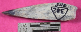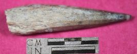 | Description / विवरण | A Point which is conical in shape but its one side is flat. Its one end is broken and other end is pointed. Its colour is greyish and it is blackish from pointed end. |