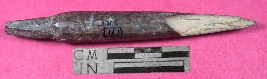 | Description / विवरण | It is an Arrow head having conical shape. Some portion from the pointed edge is chipped off. Its colour is dark brown. Its surface is uneven but smooth. |