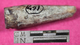 | Description / विवरण | IPoint having conical shape. It has been blunted from one end and other end is broken. It is greyish in colour and its surface is smooth. |