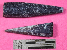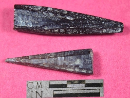 | Description / विवरण | Fragments of Arrow head with conical shape and broken from both ends. Its colour is black and smooth surface |