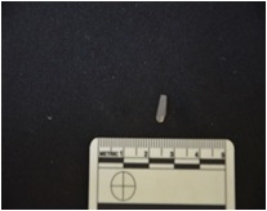 | Description / विवरण | Blade made on chalcedony, use wear marks along both edges, bulb of percussion visible, broken along the distal end |