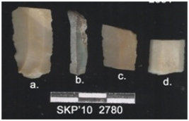 | Description / विवरण | Broken chert blade. It is rectangular in structure. The ridges can be seen. The sides are retouched. It is trapezium in cross section. |