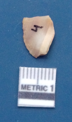 | Description / विवरण | It is a blade fragment. The ridges are clearly seen on the dorsal surface while the ventral surface is plain. It is yellowish in colour. The sides are sharp and retouched. The striking platform and the bulb of percussion is clearly seen. |