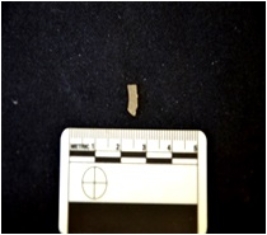 | Description / विवरण | Fragment of a blade made on chalcedony, use wear marks along both eges, broken at both ends |