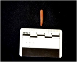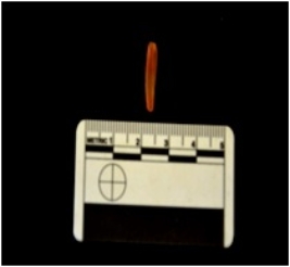 | Description / विवरण | Blade made on chalcedony, use wear marks along both edges |