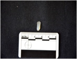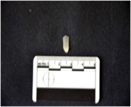 | Description / विवरण | Blade made on chalcedony, use wear marks along both edges, bulb of percussion visible |