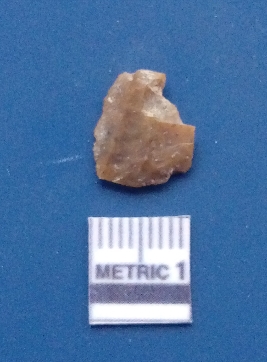 | Description / विवरण | It is a blade fragment. The ridges are clearly seen on the dorsal surface while the ventral surface is plain. It is brownish in colour. The sides are sharp and retouched. |