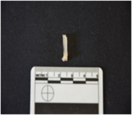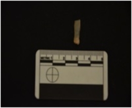 | Description / विवरण | Blade made on chalcedony, use wear marks along both edges, broken along the distal end |