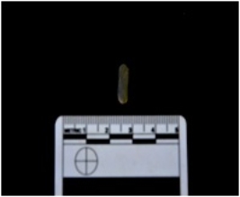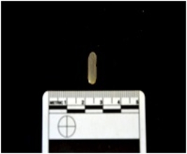 | Description / विवरण | Blade made on chalcedony, use wear marks along both edges, bulb of percussion visible |