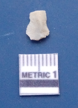 | Description / विवरण | It is a blade fragment. The ridges are clearly seen on the dorsal surface while the ventral surface is plain. It is white in colour. The sides are sharp and retouched. It is triangular in cross - section. |