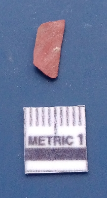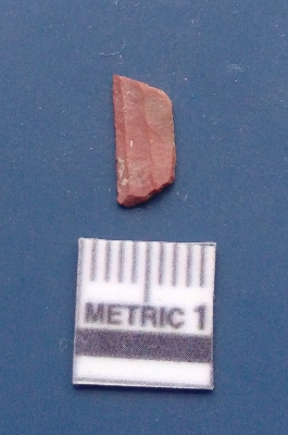 | Description / विवरण | It is a blade fragment. The ridges are clearly seen on the dorsal surface while the ventral surface is plain. It is brownish in colour. The sides are sharp and retouched. It is trapezoidal in shape and in cross - section. |