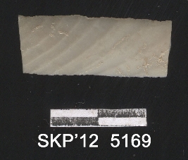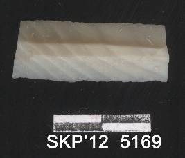 | Description / विवरण | This is a chert blade broken ends with triangular cross section, one end cross section which a bit the triangular bead is chipped off and has chisel marks like mark. Flaked ridges and sharp margins. The stone surface has lined patches diagonally Natural . |
