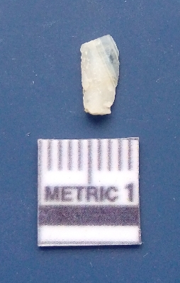 | Description / विवरण | It is a blade fragment. The ridges are clearly seen on the dorsal surface while the ventral surface is plain. It is white in colour. The sides are sharp and retouched. It is triangular in cross - section. The striking platform is clearly visible. |