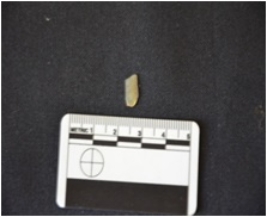 | Description / विवरण | Blade made on chalcedony, use wear marks along both edges, broken at the distal end |