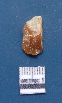 | Description / विवरण | It is a blade fragment. The ridges are clearly seen on the dorsal surface while the ventral surface is plain. It is light brownish in colour. The sides are sharp. |