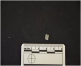 | Description / विवरण | Fragment of a blade made on chalcedony, use wear marks along both edges, broken at both ends |