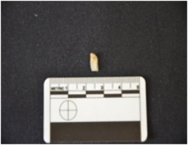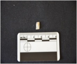 | Description / विवरण | Fragment of a blade made on chalcedony, use wear marks along both edges, broken at both ends |