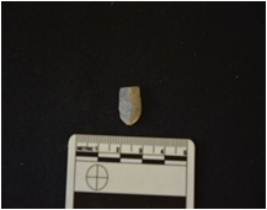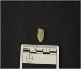 | Description / विवरण | Blade made on chalcedony, use wear marks along both edges, mid ridge along dorsal side, broken at both ends |