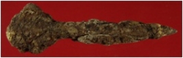 | Description / विवरण | Trench XAW 9, Qdt 2, Stratum 5A, Depth 330 to 360 cms It s an iron nail, broken and rusted badly. Tip is thin and has a broad cap. Appearance is rusty brown. |