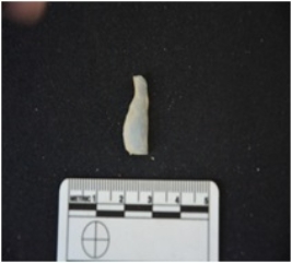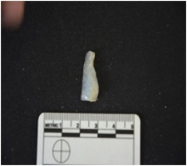 | Description / विवरण | Blade made on chalcedony, backing seen on one side, cutting edge is retouched |