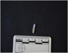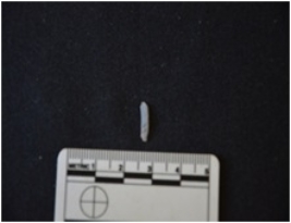 | Description / विवरण | Blade made on chalcedony, use wear marks along both edges, bulb of percussion visible, |