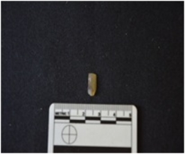 | Description / विवरण | Blade made on chalceony, broken at the distal end, bulb of percussion visible |