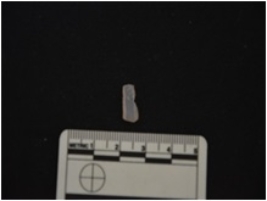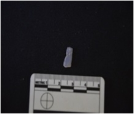 | Description / विवरण | Blade made on chalcedony, use wear marks along one edge, broken at the proximal end |