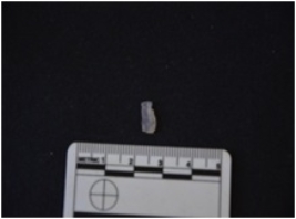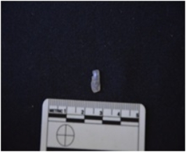 | Description / विवरण | Blade made on chalcedony, use wear marks along one edge, broken at the proximal end |