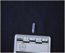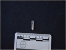 | Description / विवरण | blade made on chalcedony, use wear marks along both edges, bulb of percussion visible |