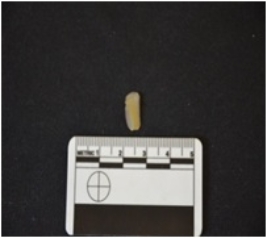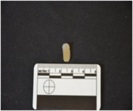 | Description / विवरण | Blade made on chert, use wear marks along both edges, bulb of percussion visible |